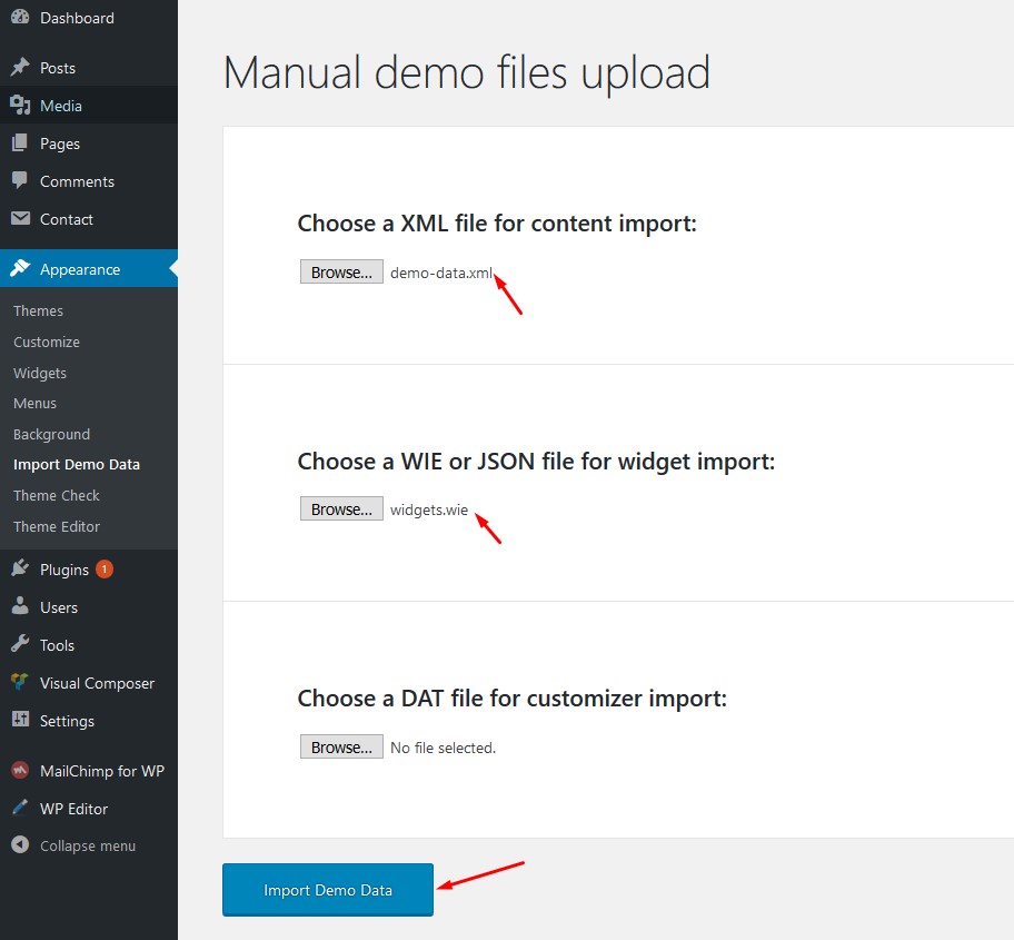 If you're using the theme to build a new website which doesn't have content yet, I strongly recommend you to use the demo content files.